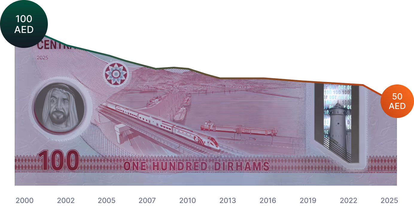 Did you know that 100 AED in 2000 is now worth only 50 AED?