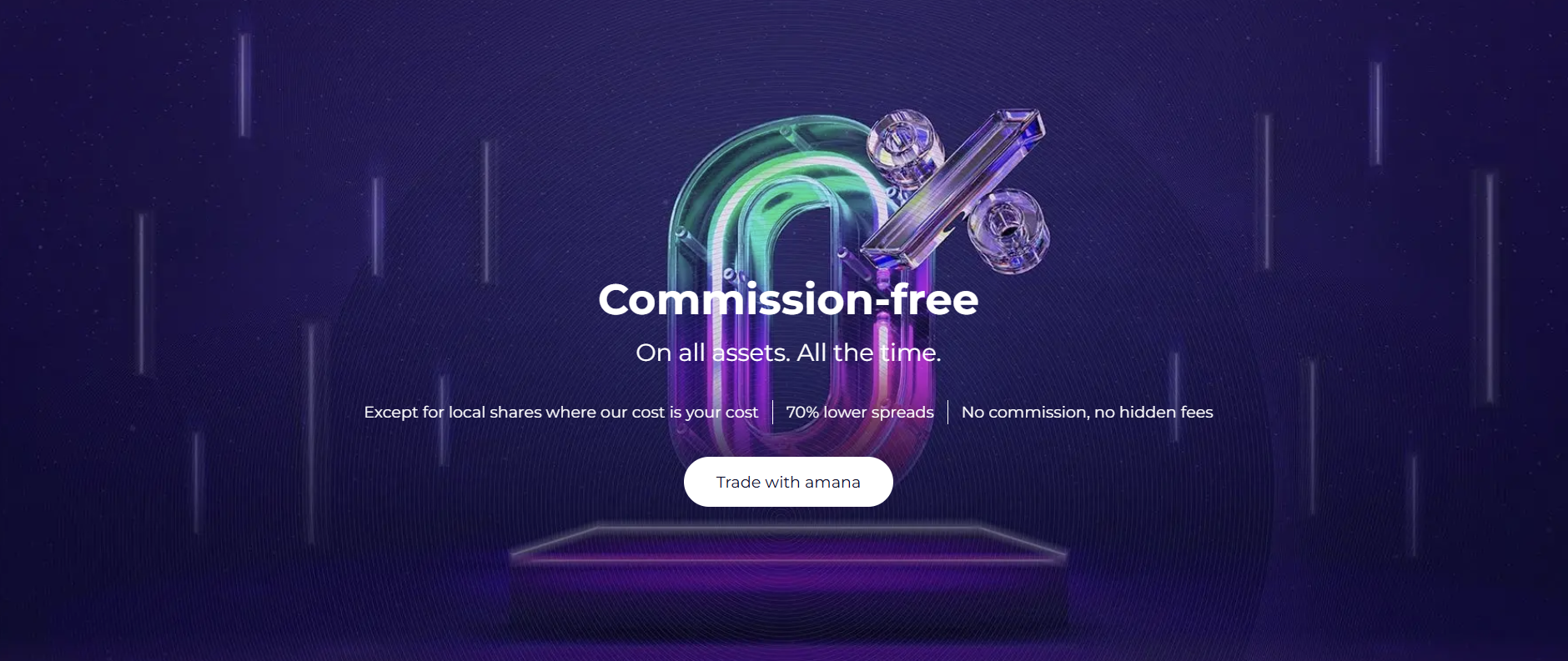 Amana offers a transparent and low-cost trading model, promoting zero commissions on most assets such as US stocks, ETFs, and cryptocurrencies. Instead of charging per-trade fees, the broker earns mainly from spreads, which it claims are up to 70% lower than market averages.