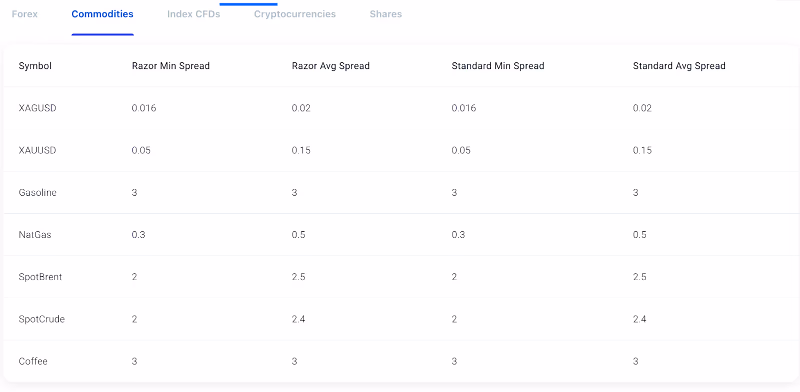 Pepperstone operates on a spread-based pricing model for gold. It's known for its ultra-tight spreads; the minimum spread can be as low as 5 cents, and the average spread is around $0.15 on XAU/USD.