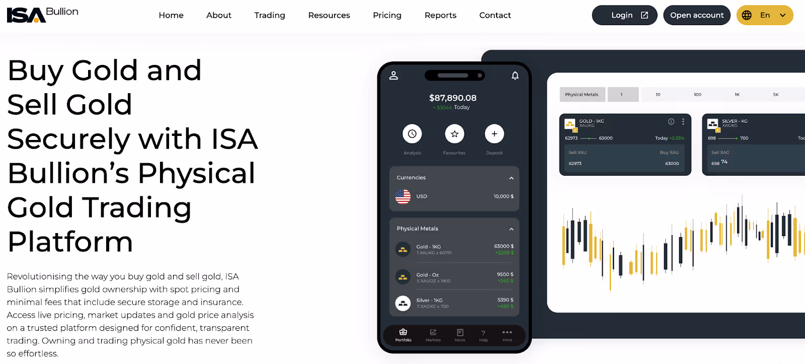 ISA Bullion is a Dubai-based online platform that specializes in physical precious metals trading, with a focus on gold. Unlike the other brokers on this list, ISA Bullion isn’t about derivatives or paper trades; it’s about buying and selling real, allocated gold that you own.