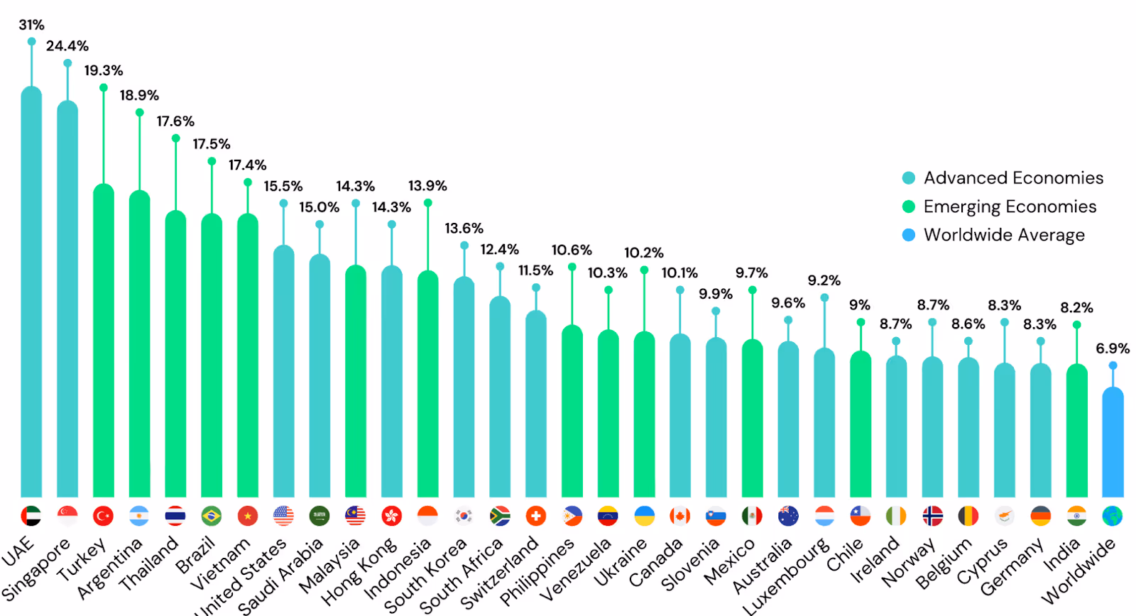 There are over 560 million cryptocurrency owners worldwide, out of which 31% live in the UAE.