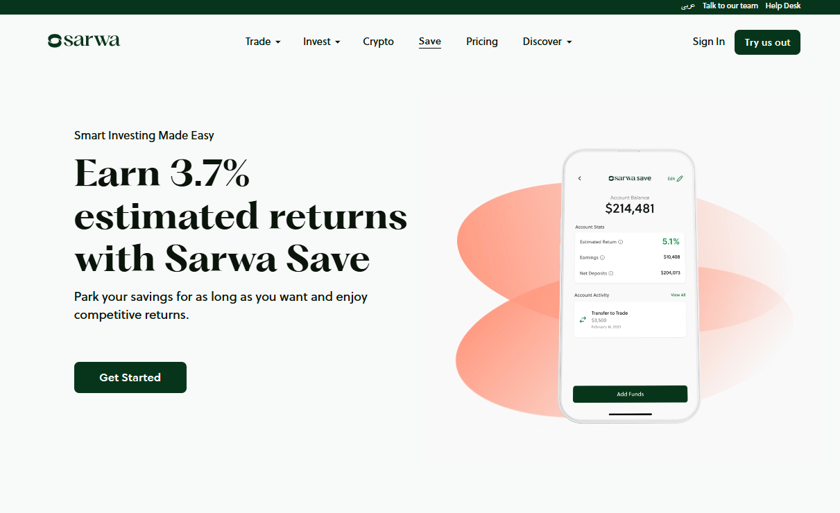 Sarwa Digital Wealth (Capital) Limited is a UAE‑based fintech platform (founded in 2017, headquartered in Abu Dhabi) offering a suite of financial services, including Sarwa Save which provides a cash‑management fund offering estimated returns (e.g., 3.7% for Save+ or 4.0% for Halal variant), with no lock‑in, no minimum balance, and zero withdrawal fees.