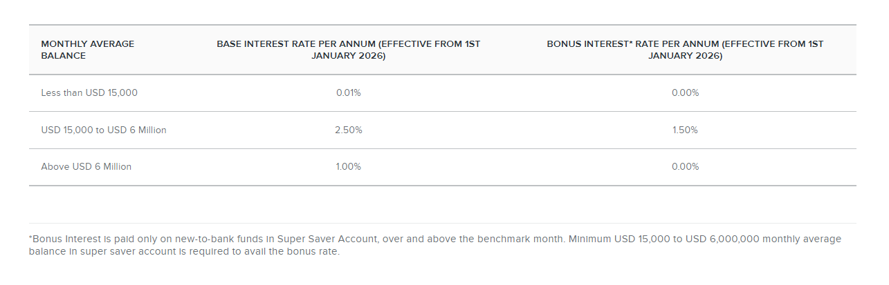 The Super Saver Account provides up to 5% p.a. interest (including a promotional bonus for new customers) for balances starting at AED 50,000. The account features monthly interest payouts, seamless digital onboarding, and is ideal for UAE residents seeking competitive savings rates from a well-established, fully regulated bank.