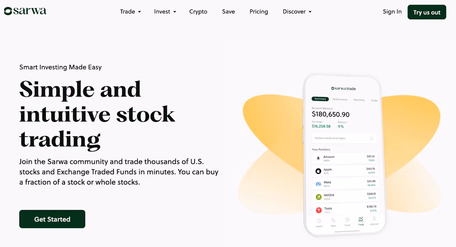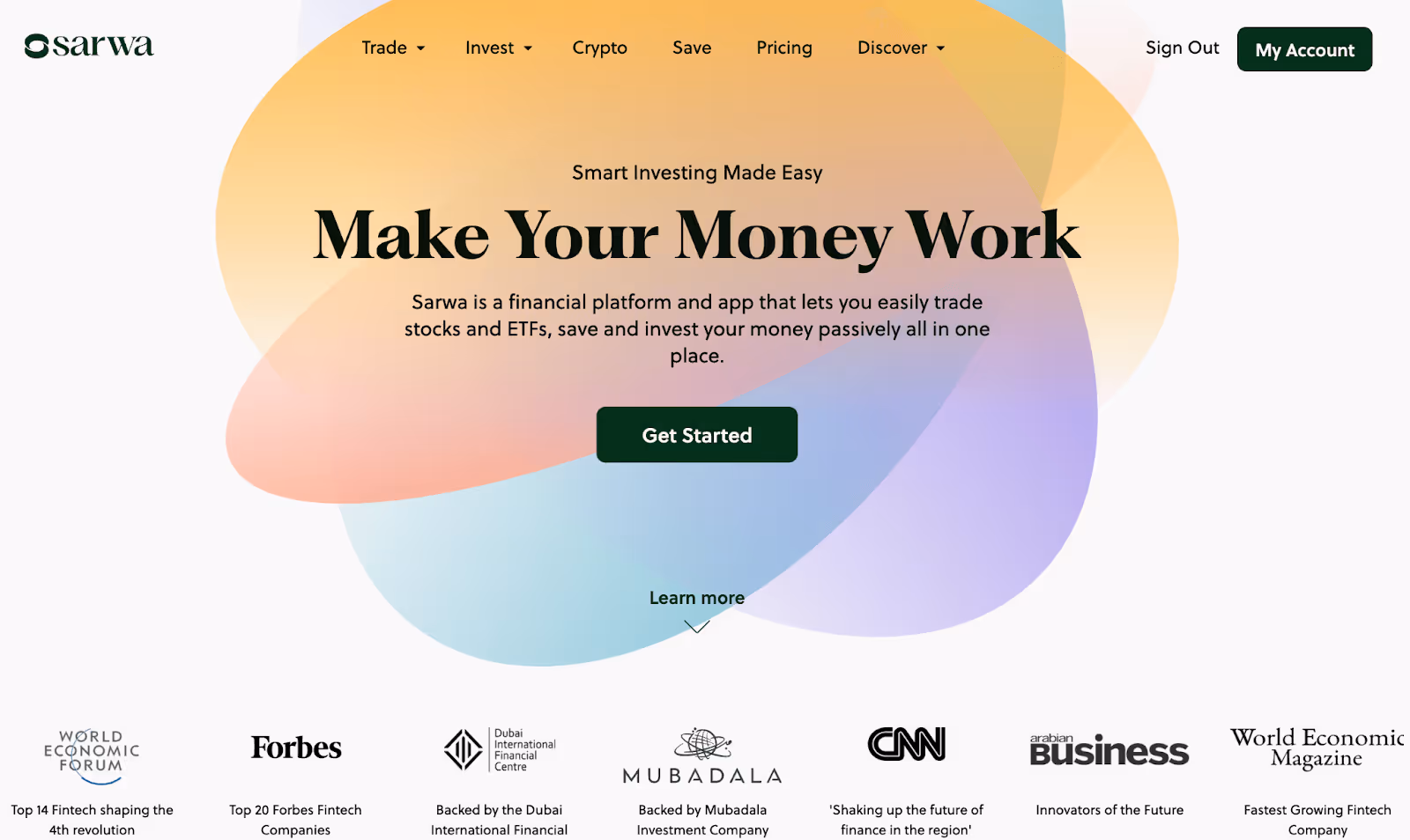 Sarwa is one of the UAE’s homegrown investing platforms that lets you trade, invest, and save all from a single app. The platform has attracted over 180,000 registered users and is tailored to Emiratis and Expats who want global market access with local convenience.
