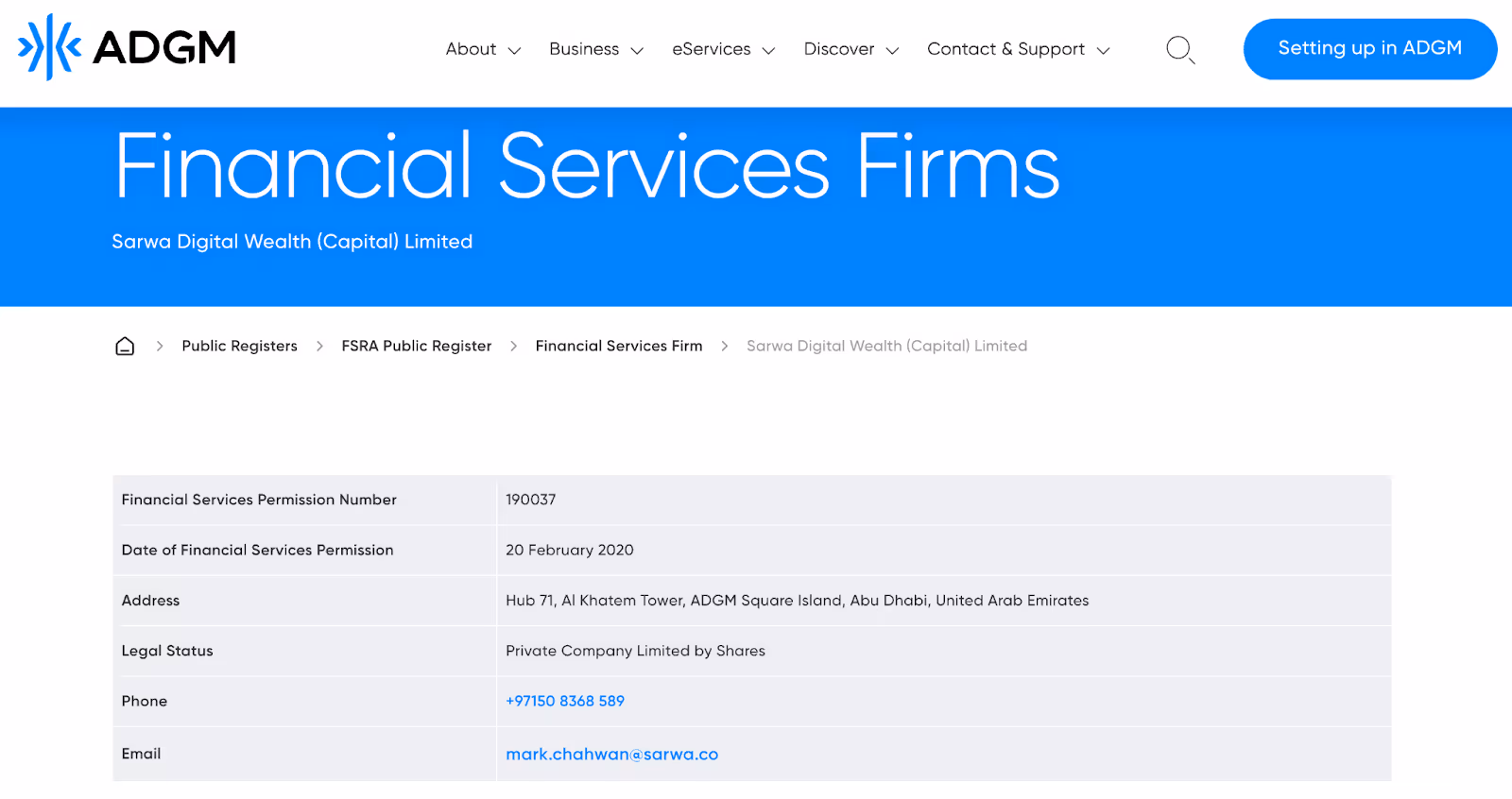 Sarwa is regulated by the Abu Dhabi Global Market (ADGM) Financial Services Regulatory Authority.
