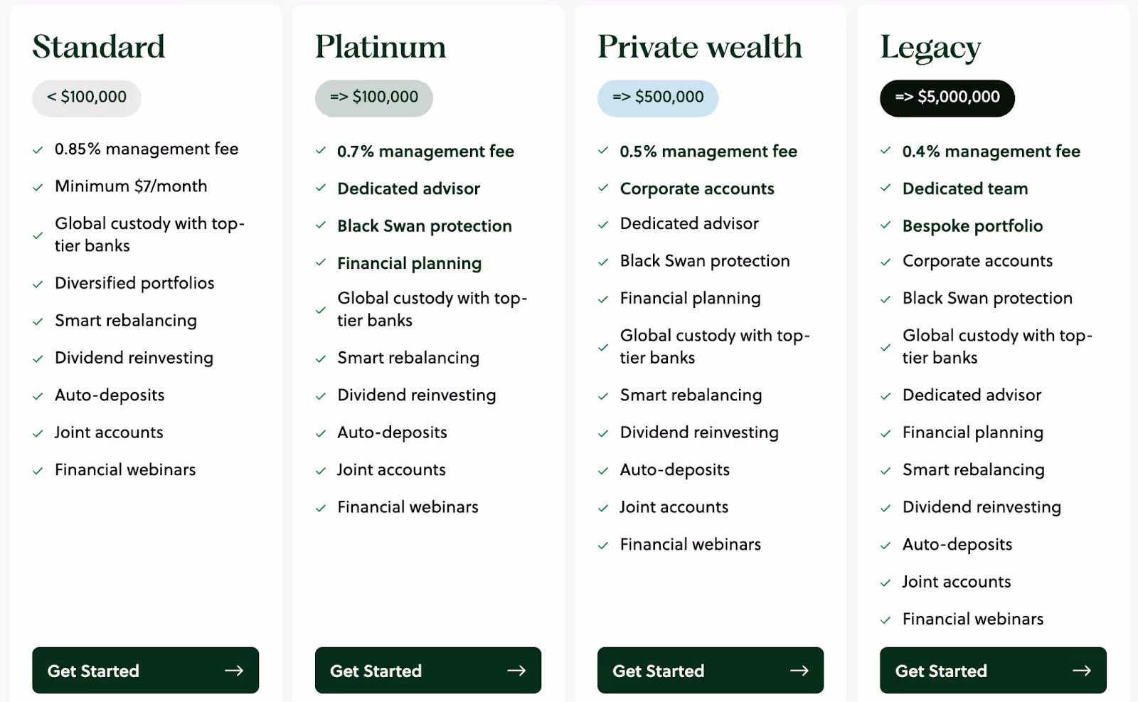 For portfolios above $500k, Sarwa provides a Private Wealth service. Investors benefit from lower annual fees, a dedicated advisor, and access to more advanced strategies like Black Swan Protection.