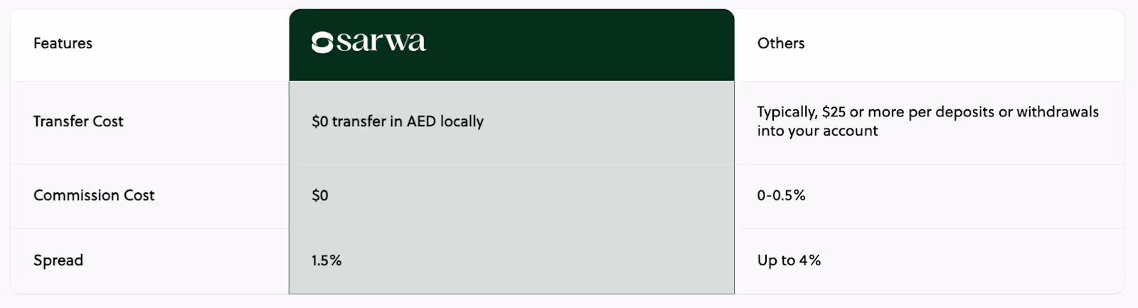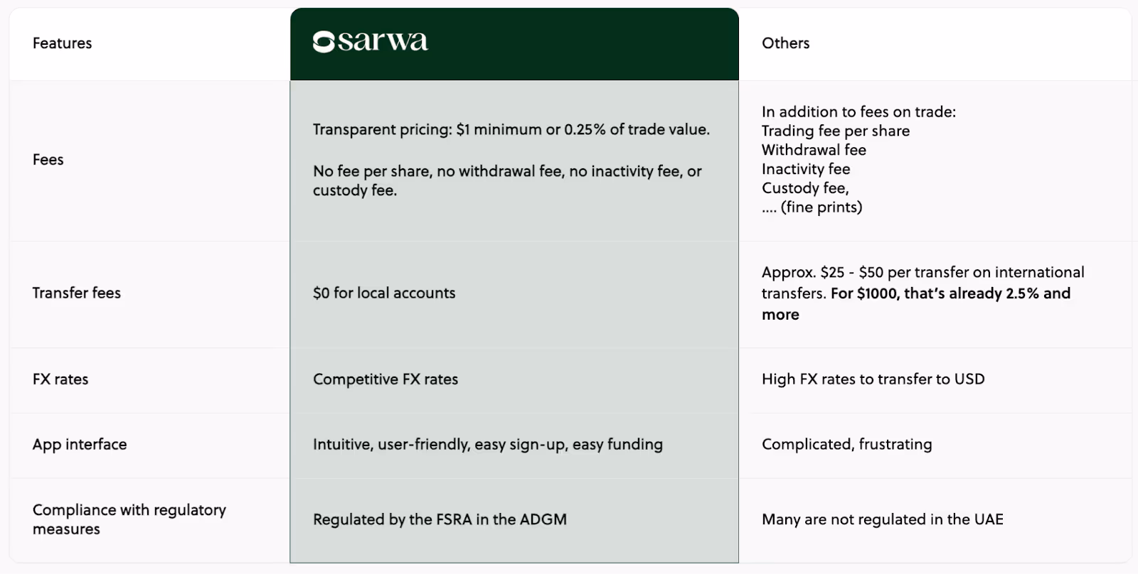 For those short on time, the table below provides a quick summary of Sarwa’s key features and terms for UAE investors.