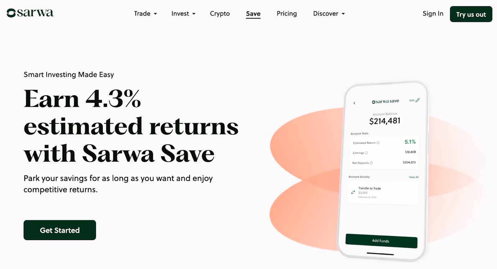 Sarwa Save is the platform's solution for cash management, designed as a modern alternative to traditional low-interest bank savings accounts.